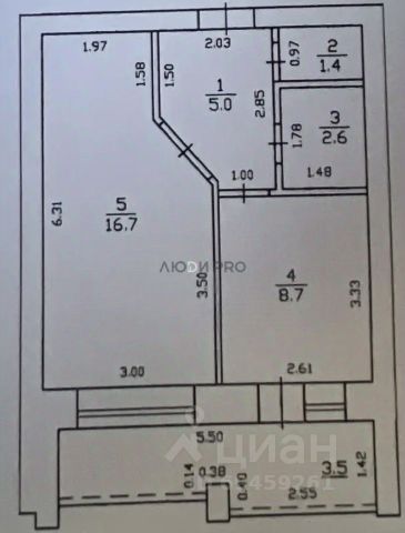 Планировка квартиры: кухня - 12,1 м2, комната - 17 м2, санузел - 3,5 м2, прихожая - 8,1 м2.