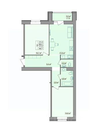 Продаётся 2-комнатная квартира в строящемся доме (з/у 90 (9-я очередь)), срок сдачи: I-кв. 2027, общей площадью 106.2 кв.м., на 9 этаже.