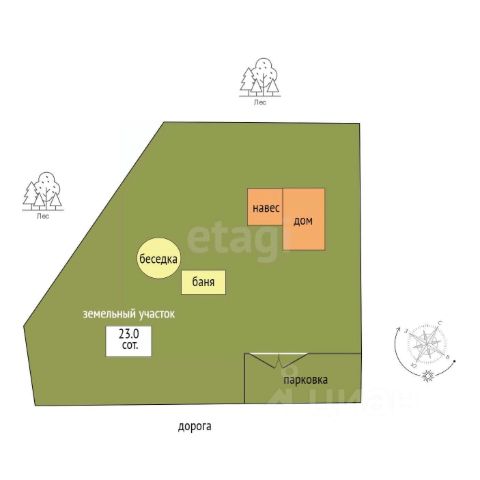 Территория огорожена высоким забором из металлопрофиля, и поскольку площадь участка приличная, то предусмотрена возможность подъезда к нему с двух сторон.