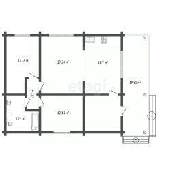 Общая площадь дома составляет 73,3 м2. Внутри дома две комнаты, обустроенные для жизни.