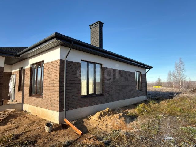 Дом построен полностью из керамического кирпича, толщина стен 640 мм, облицован. Внутри выполнена штукатурка стен и стяжка пола.
