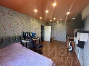 В комнате зеркальный шкаф купе, который остается при продаже.