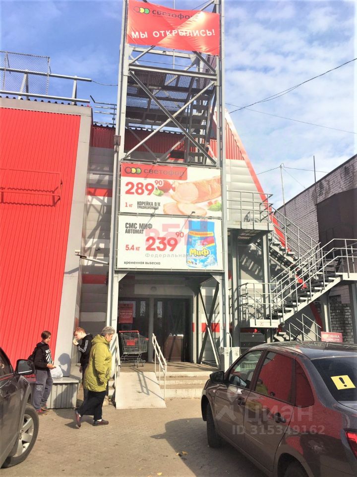 Первый этаж занимает продуктовый дискаунтер "Светофор" и фирменный магазин "КМК", на втором этаже размещен детский спортивный клуб (гимнастика).
