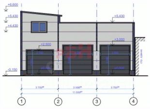 Имеется двое ворот автоматических, секционного типа размером 3 х 3 метра, одни ворота размером 2,7 х 2,7 метра и запасной выход на противоположную сторону;
