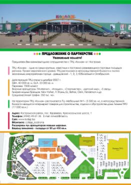 В настоящее время доступны к аренде помещения от 20 до 450 кв.м., а также площадь под остров в торговой галерее ТРЦ или на прилегающей территории!