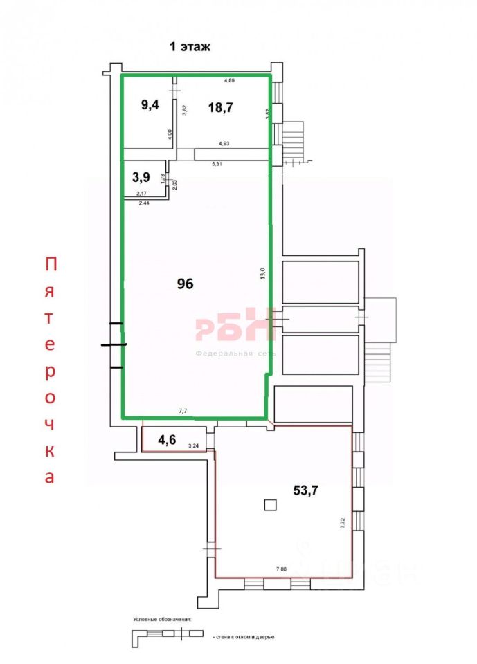 Предлагается в аренду помещение свободного назначения общей площадью 128 кв. м., расположенное на первом этаже торгового центра. Основной вход рядом с прикассовой зоной супермаркета "Пятёрочка".