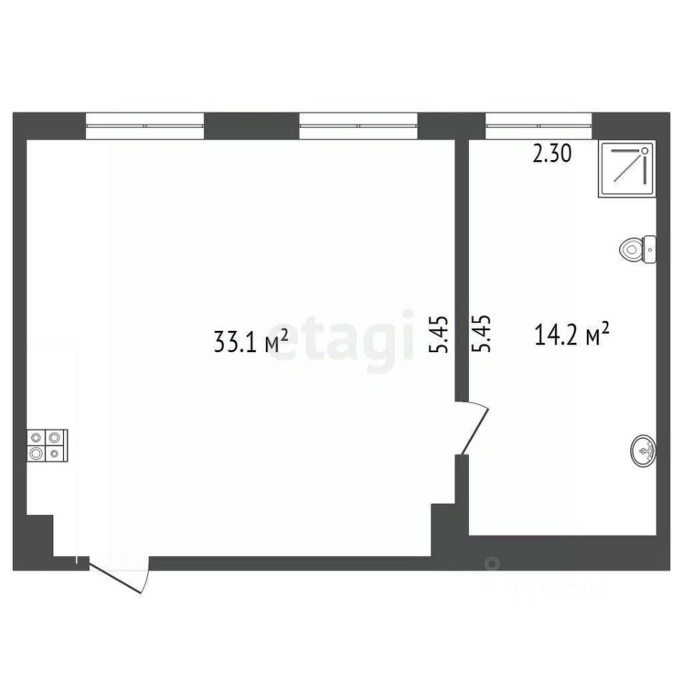 Общая площадь офиса 47,3 кв.м