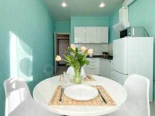 Кухня оборудована всем необходимым для приготовления и приема пищи: в наличии вместительный холодильник, электрическая варочная поверхность, чайник, микроволновка, посуда.