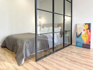 В квартире есть всё необходимое для вашего удобства: цифровое телевидение, Smart TV, Wi-Fi интернет, тёплый пол, кондиционер.