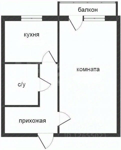 Общая площадь квартиры 33,7 кв.м.