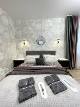 - Две отдельные комнаты: спальня с двуспальной кроватью (матрас 160х200) + диван 140х180 и ещё одна спальня с диваном 150х190. Всего 6 спальных мест. По запросу предоставляем детскую манеж-кровать 60х120