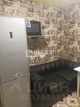 диван, двухспальная кровать, шкаф для хранения вещей, стиральная машина, холодильник, микроволновка, телевизор.