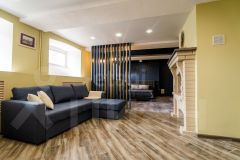 Большая комната-гостинная, с зонированием на зону отдыха и приема гостей, площадью 35 кв.м