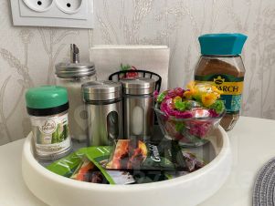 В квартире есть всё необходимое для комфортного проживания до трёх человек. Вне зависимости от сезона всегда есть горячая вода, (установлен водонагреватель).