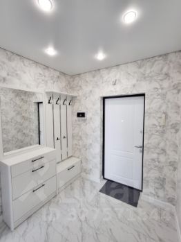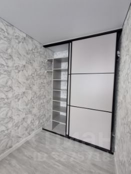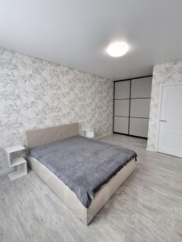 Мебель: в комнате большой встроенный шкаф-купе в пол, двуспальная кровать. В прихожей — зеркальная входная группа .