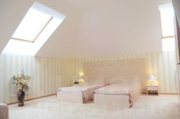 Однокомнатный номер, три односпальные кровати. В номере санузел с теплыми полами раздельный - душевая кабина и унитаз в отдельных помещениях. Также в номере телевизор, спутниковое ТВ, фен, телефон, холодильник, мини-бар, кондиционер, парфюмерия.