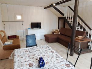 семейно гостевой дом на небольшую компанию6.7 человек.дом находится в живописном месте на берегу реки стежера,чистейшая вода,рыбалка возможно рыбалка с гидом,прокат весельной лодки,сапбордов,велосипедов,удочки.рядом лес бор,грибы ягоды. на территории дома есть беседка монгальная зона шампура, решётка, батут для детей .в доме есть все необходимое для проживания.два двухместных дивана,одна двухспальная кровать,детский раскладной диван,телевизор интернет wife.фен,чайник,микроволновка,индукционная плита,водонагреватель,душевая кабина,гели,шампуни,полотенца,чистое постельное белье. праздничные дни от 2х суток.граждане славянской внешности!при заселении берётся залог,суточной стоимости,возвращается после приемки дома.