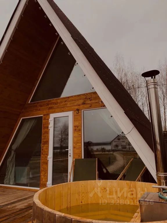 Наш треугольный дом с купелью на веранде, расположен на самом берегу реки волга в живописном месте в окружении леса, всего в 20 минутах езды от Костромы.