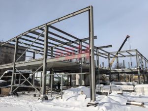 Установлен металлический каркас здания. Во 2 квартале планируется завершить установку сэндвич-панелей , плит-перекрытий и начать закрытие теплового контура.