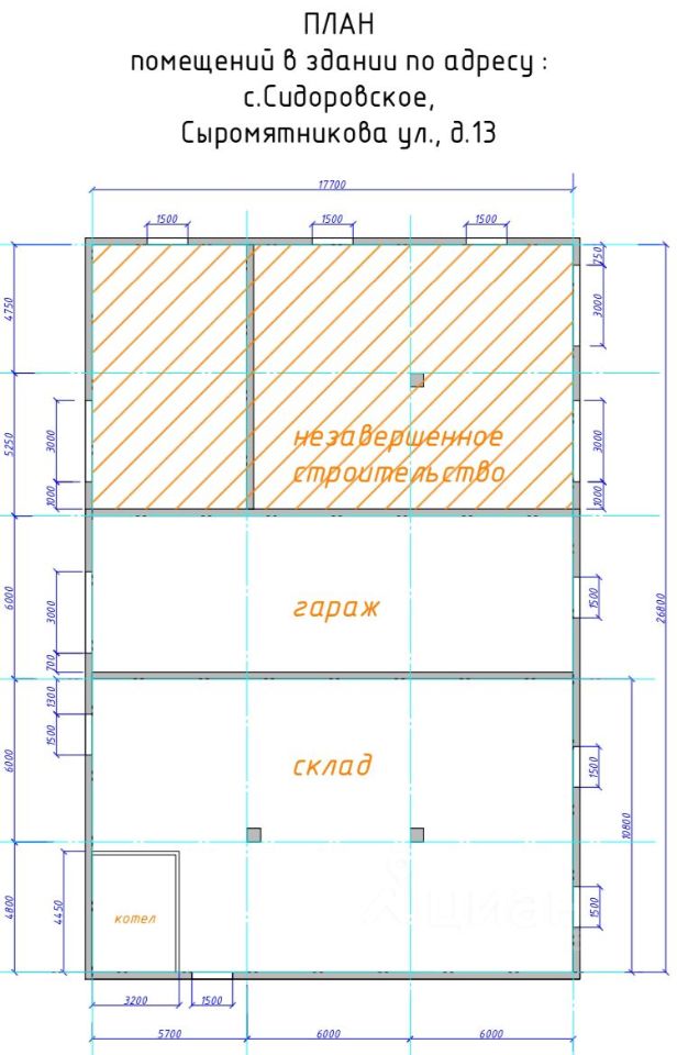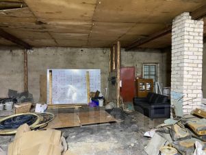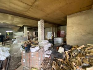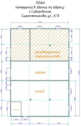Недострой разделен пополам выход на две улицы. С одной стороны двое ворот для машин, с другой дверь. Есть вход в гараж. В гараж так же ворота для машины. Склад с отдельной дверью. 15квт заведено, можно еще 15 подключить. Каналия есть в складе, колодец на четыре кольца. Воду можно подвести. Две печки и котельная