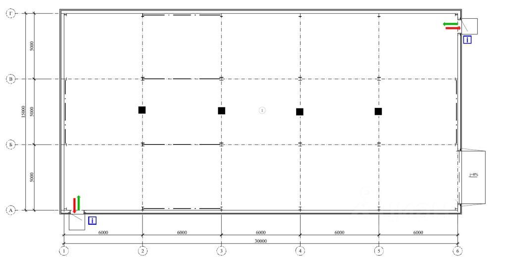 Конструктив с большим потенциалом: Прочное здание размерами 30x15м с высотой потолков 6,5 метров. Готовый проект позволяет без проблем установить антресоль и грузоподъемные механизмы (тельферы), значительно увеличив эффективность пространства.