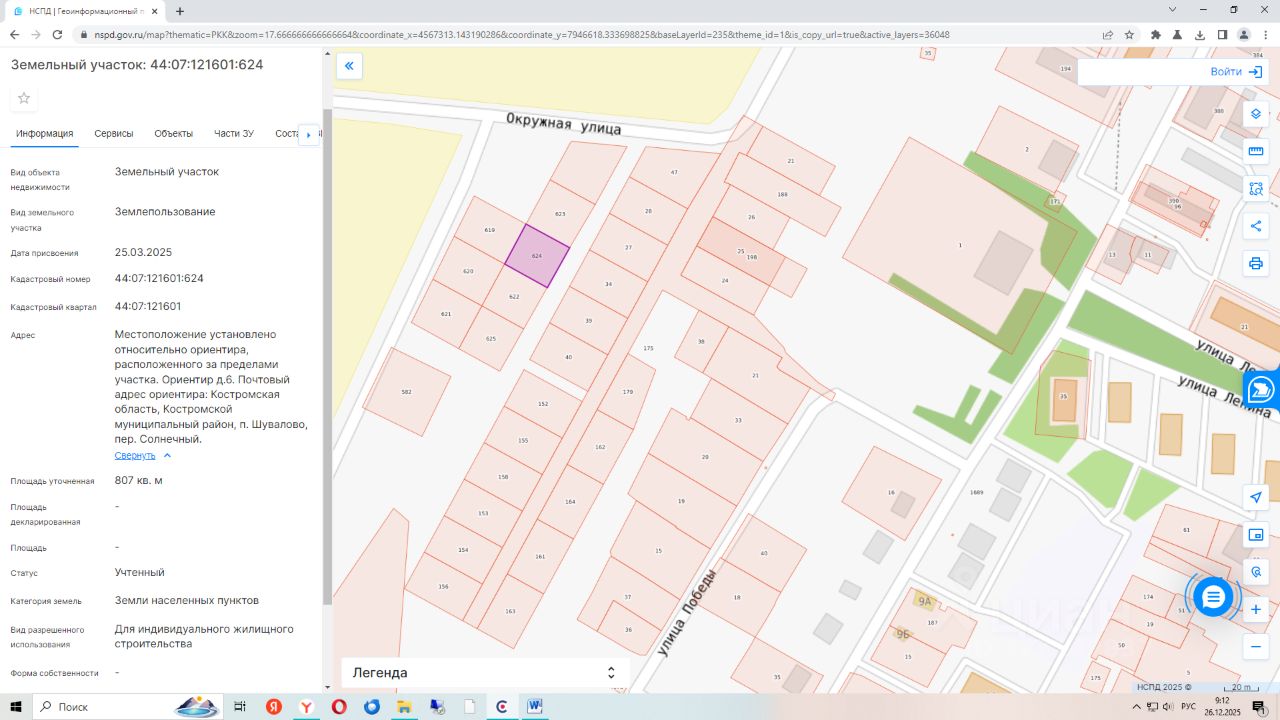Земельный участка с кадастровым номером 44:07:121601:624, общей площадью 807 кв.м. Местоположение установлено относительно ориентира, расположенного за пределами участка. Ориентир д.6, примерно в 50 м на юго-запад. Почтовый адрес ориентира: Костромская область, Костромской муниципальный район, п. Шувалово, пер. Солнечный. Вид разрешенного использования для индивидуального жилищного строительства.
