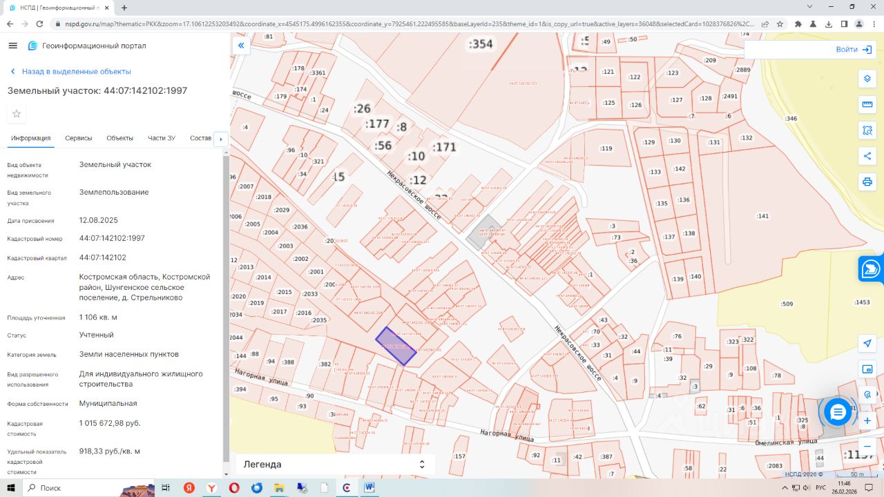 Земельный участок с кадастровым номером 44:07:142102:1997, общей площадью 1106 кв.м., расположенный по адресу: Костромская область, Костромской район, д. Стрельниково.