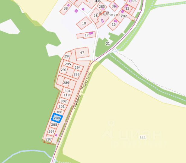 Земельный участок с кадастровым номером 44:08:021301:299 площадь 900 по адресу Российская Федерация, Костромская область, муниципальный округ Красносельский, деревня, земельный участок 27