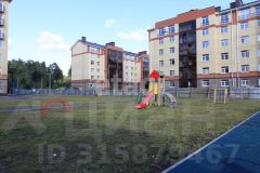 Огороженная территория с детской площадкой и паковочными местами.