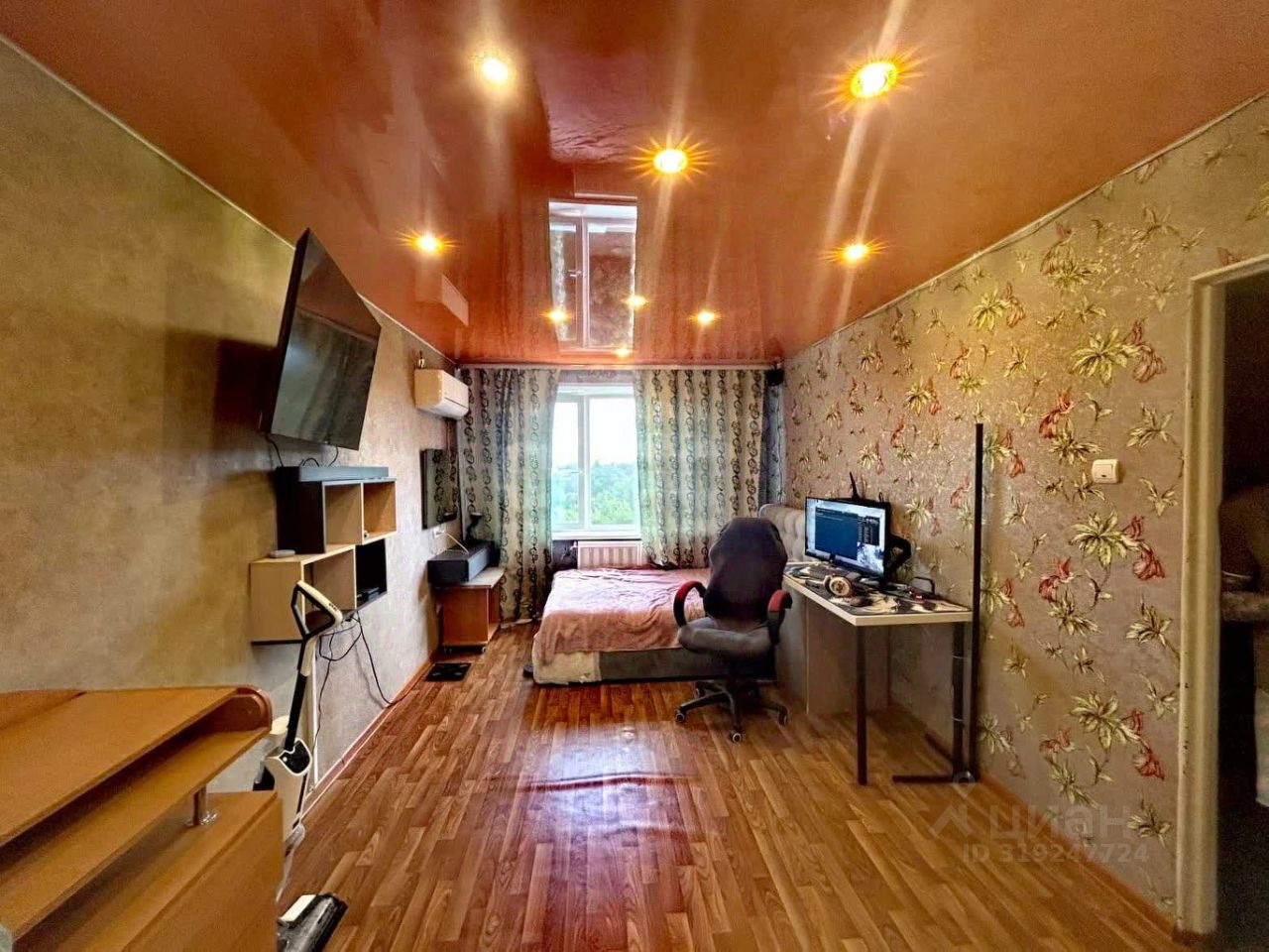 В квартире выполнен косметический ремонт, везде натяжные потолки, на полу линолеум.