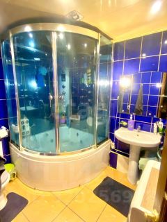 Сан узел совмещенный, выполнен в керамической плитке. Остается большая душевая кабина.