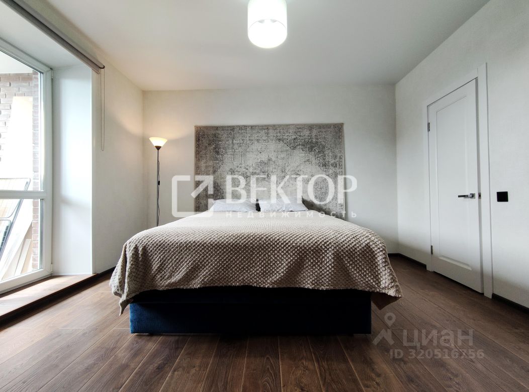 Уютная спальня с гардеробной и просторная кухня-гостиная с большими окнами!