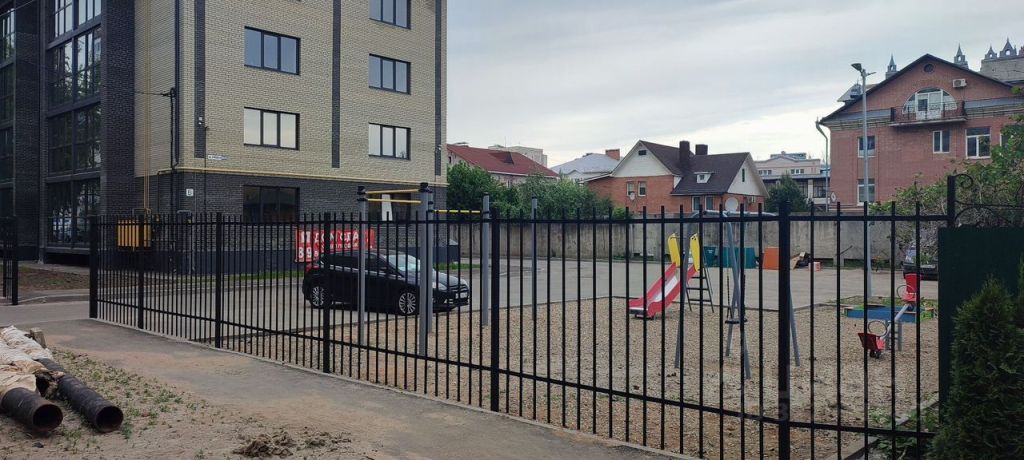 Закрытая территория с автоматическими воротами и домофоном.