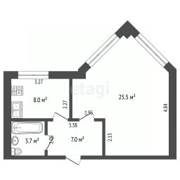 Жилая площадь: 25,5 кв.м.,