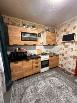 Кухня 9 кв.м., из которой есть выход на застеленный, пластиковыми стеклопакетами, балкон. Установлен кухонный гарнитур, останется новым хозяевам, при продаже.