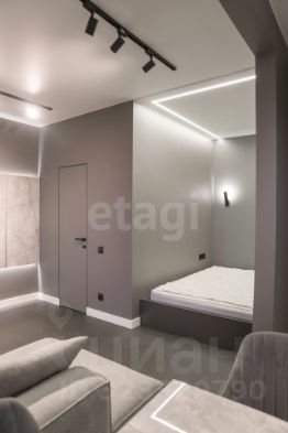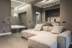 1-к квартира-студия общей площадью 37.8 кв. м. с автономным отоплением. Перепланировка узаконена. Есть французский балкон.