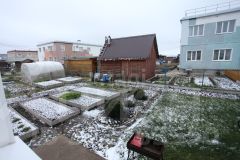 Территория вокруг дома благоустроена и ухожена. За квартирой закреплён земельный участок площадью 1,5 сотки, земля удобрена и разработана, имеются кусты смородины, крыжовника, многолетних цветов. Есть зона отдыха для любимых занятий.