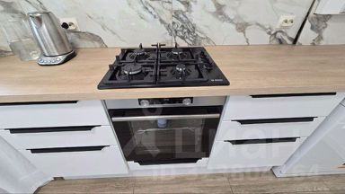 Фасады кухонного гарнитура из МДФ, ящики с доводчиками, кухонный фартук крупноформатный керамогранит. На вводы холодной воды установлены магистральные фильтры, а также установлен трехступенчатый стационарный фильтр Барьер для фильтрации воды до уровня питьевой.