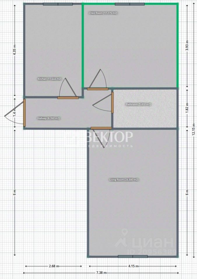 - Общая площадь: 66.2 м