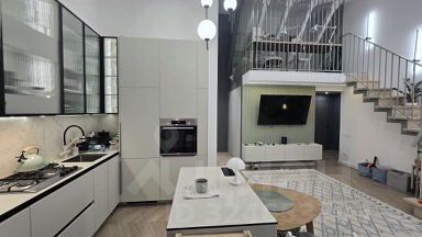 Панорамные окна, теплые подоконники. Балкон с панорамным остеклением, проведен теплый пол. Очень много различных световых зон. Дорогой кухонный гарнитур со встроенной варочной поверхностью, духовым шкафом, посудомоечной машиной, винным шкафом, микроволновкой и холодильником. Есть отдельное помещение для мытья собаки. Можно его переоборудовать в санузел. В комнатах потолки доходят до 5.2 метров. Отдельно сделан кабинет на 2 этаже в кухне-гостиной. Полы везде, кроме спален - плитка. В спальнях ламинат. По мебели которая остается в стоимость квартиры уточняйте по телефону. Торг при определённых условиях.