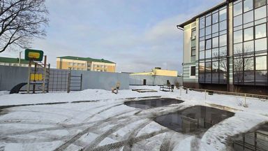 Территория вокруг дома огорожена, парковка, детская площадка.