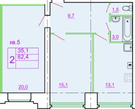 2-комн. от 62,4 м²