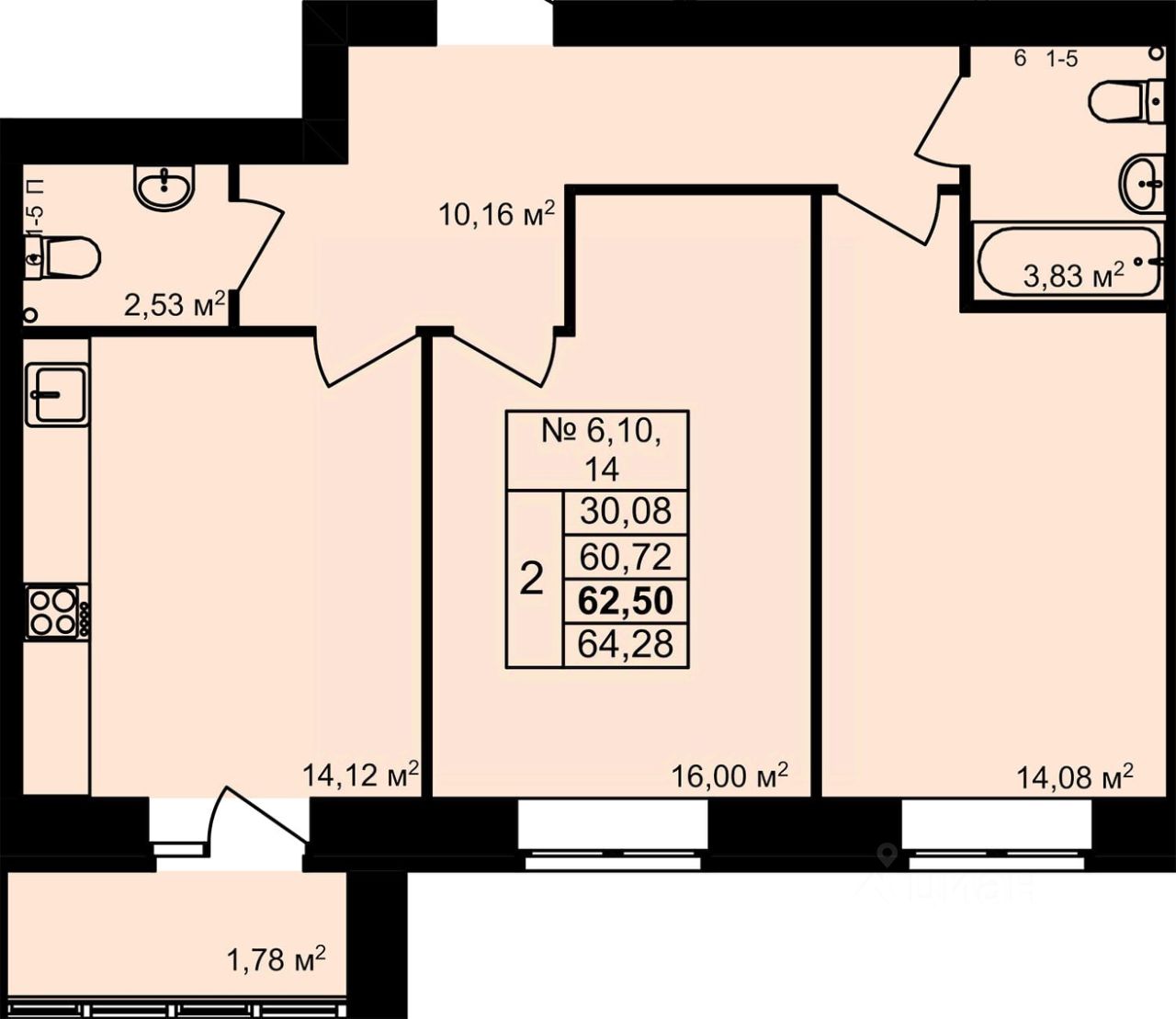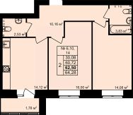 2-комн. квартира, 62,5 м²