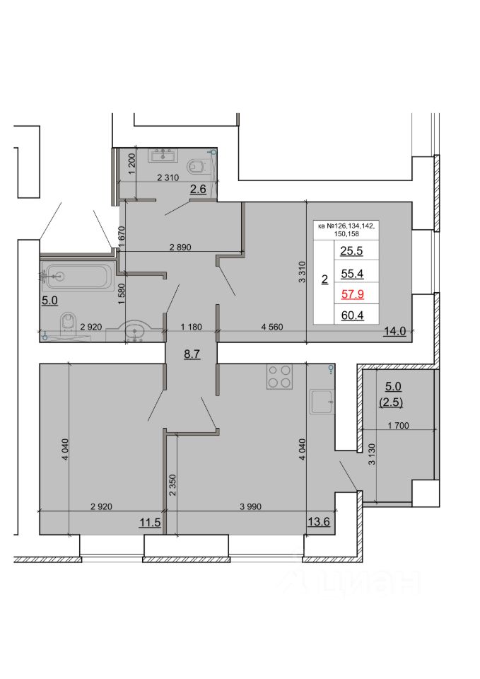 Продаётся 2-комнатная квартира в строящемся доме (Дом 2), срок сдачи: IV-кв. 2027, общей площадью 57.9 кв.м., на 2 этаже. Новый жилой комплекс "Знак" от застройщика ГК "МастерСтрой" расположен по адресу: Россия, Кострома, бульвар Маршала Василевского