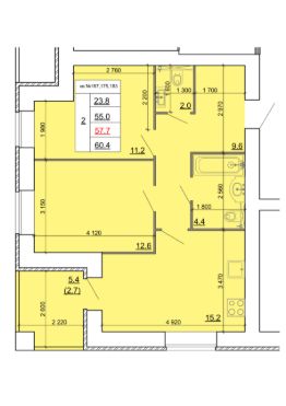 Продаётся 2-комнатная квартира в строящемся доме (Дом 2), срок сдачи: IV-кв. 2027, общей площадью 57.7 кв.м., на 7 этаже. Новый жилой комплекс "Знак" от застройщика ГК "МастерСтрой" расположен по адресу: Россия, Кострома, бульвар Маршала Василевского