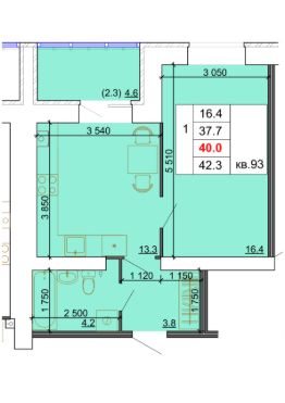 Продаётся 1-комнатная квартира в строящемся доме (з/у 90 (9-я очередь)), срок сдачи: I-кв. 2027, общей площадью 40 кв.м., на 9 этаже.