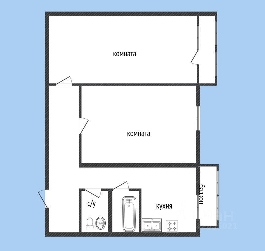 Две больших комнаты по 19 м2.