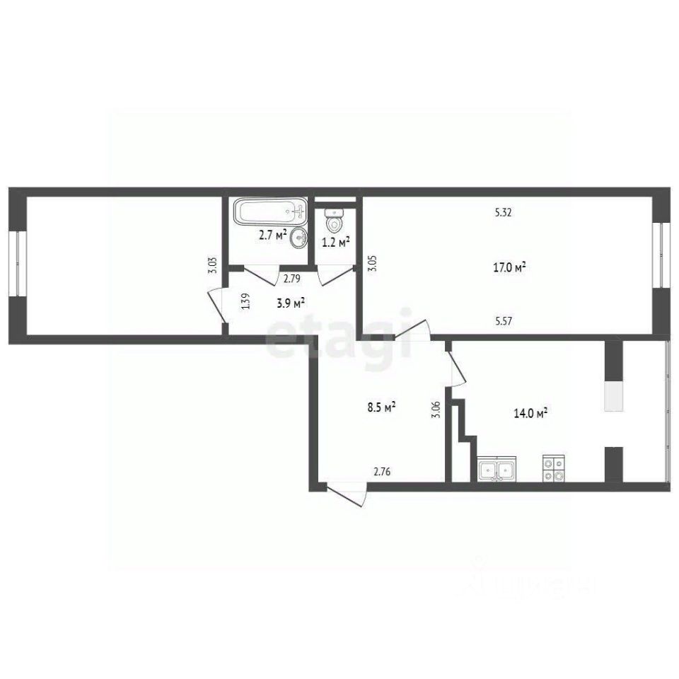 54,9 м²