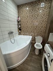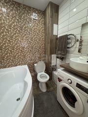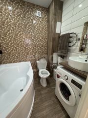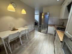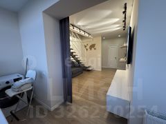 Квартира выполнена с современным ремонтом из качественных материалов и готова к заселению. На первом уровне расположена светлая гостиная, объединенная с утепленной лоджией, отдельная просторная комната, кухня и санузел. Здесь установлены теплые полы в коридоре и на лоджии.