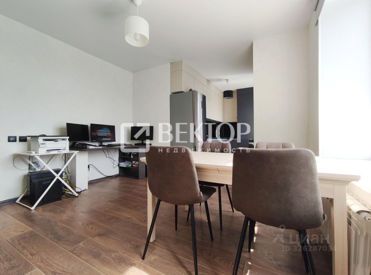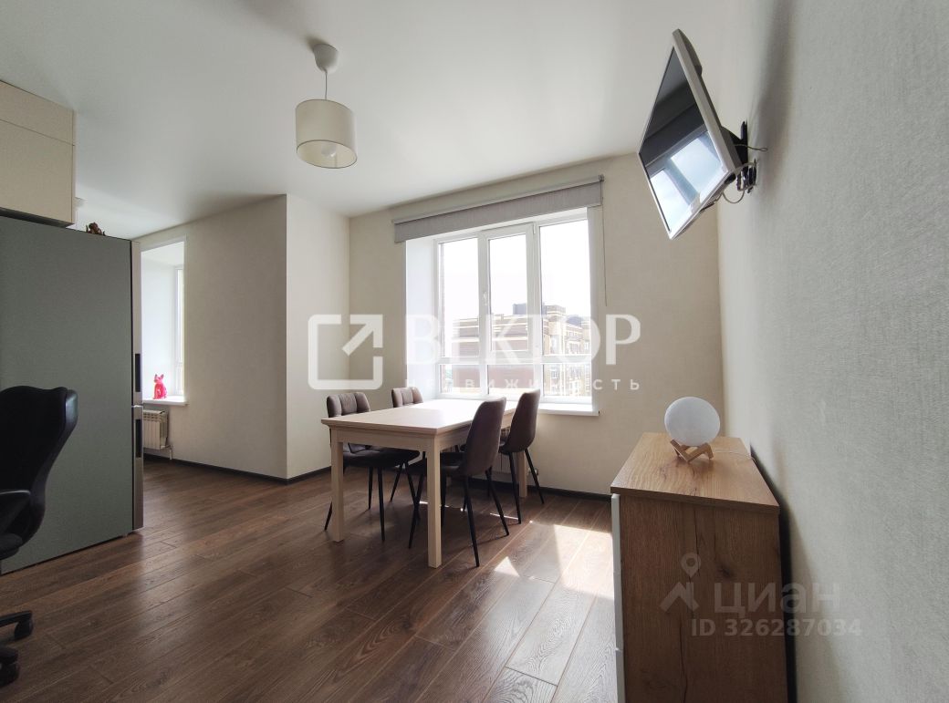 Уютная спальня с гардеробной и просторная кухня-гостиная с большими окнами!